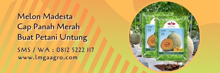 Melon Madesta Cap Panah Merah Buat Petani Untung. 082141747141 (Telp) 081-252-221-17 (via SMS/WA). Toko Pertanian LMGA Agro jual benih melon madesta kualitas terbaik harga murah untuk petani buah.